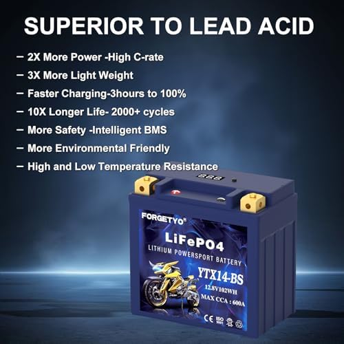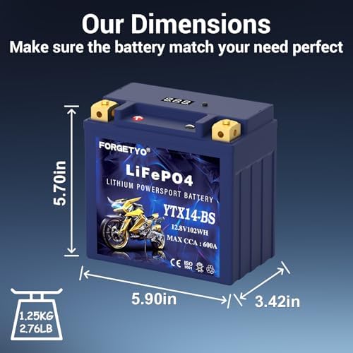 Sponsored Ad - YTX14-BS Lithium Motorcycle Battery, ATV Battery 12V 8AH 600CCA Compatible with Yamaha Scooter Snowmobile Jet Ski, Scooter, PWC & More